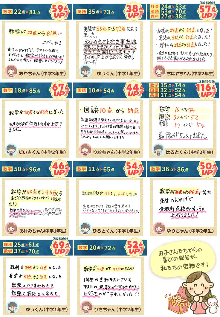 35年の指導経験とデータに基づいた独自の定期テスト対策で、3万人以上の点数UPを実現してきました。