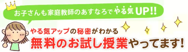 私たちは、小・中・高校生のお子さんを対象に、『無料のお試し授業』をやっています。 (お一人1回限り:120分)