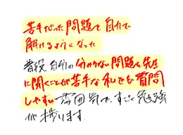 苦手だった問題を自力で解けるようになった 普段自分の分からない問題を先生に聞くことが 苦手な私でも質問しやすい雰囲気がすごい勉強が捗ります