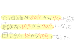 外国語が80点から90点になった 算数が60点から70点になった 国語が60点から90点になった