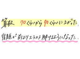 算数 70くらいから90くらいに上がった 宿題が前よりスラスラ解けるようになった