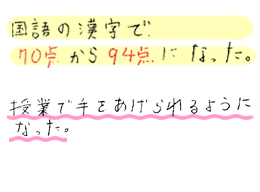 国語の漢字で70点から94点になった。授業で手をあげられるようになった。