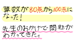算数が80点から100点になった!先生のおかげで問題がわかってきた。