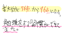 数学が56点から96点になった。勉強をする習慣ができてきた。