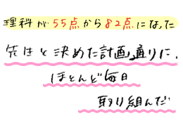 理科が55点から82点になった。先生と決めた計画通りにほとんど毎日取り組んだ
