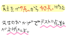 英語が7点から40点になった。先生のおかげでテストの点数が上がったよ。