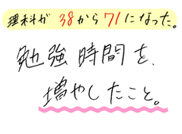 理科が38点から71点になった。勉強時間を増やしたこと。