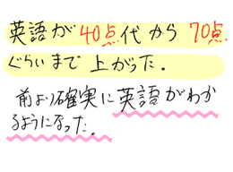 英語が40点代から70点ぐらいまで上がった。前より確実の英語が分かるようになった。