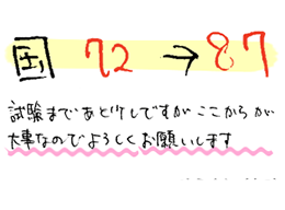 国語72点→87点。試験まであと少しですが、ここからが大事なのでよろしくお願いします。