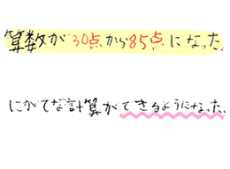 算数が30点から85点になった。苦手な計算ができるようになった。