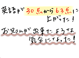 英語が30点から63点に上がった!お兄さんが出来たような気分になった!