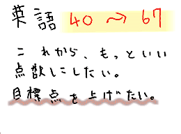 英語40→67。これから、もっといい点数にしたい。目標点を上げたい。