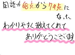 国語が68点から79点になった。わかりやすく教えてくれてありがとうございます。