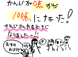 かんじが0点から100点になった!かんじが大好きになりました!!先生のおかげ☆