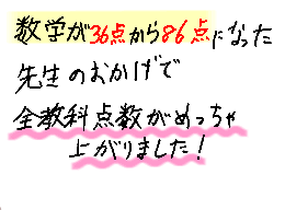 数学が36点から86点になった。先生のおかげで全教科点数がめっちゃ上がりました!